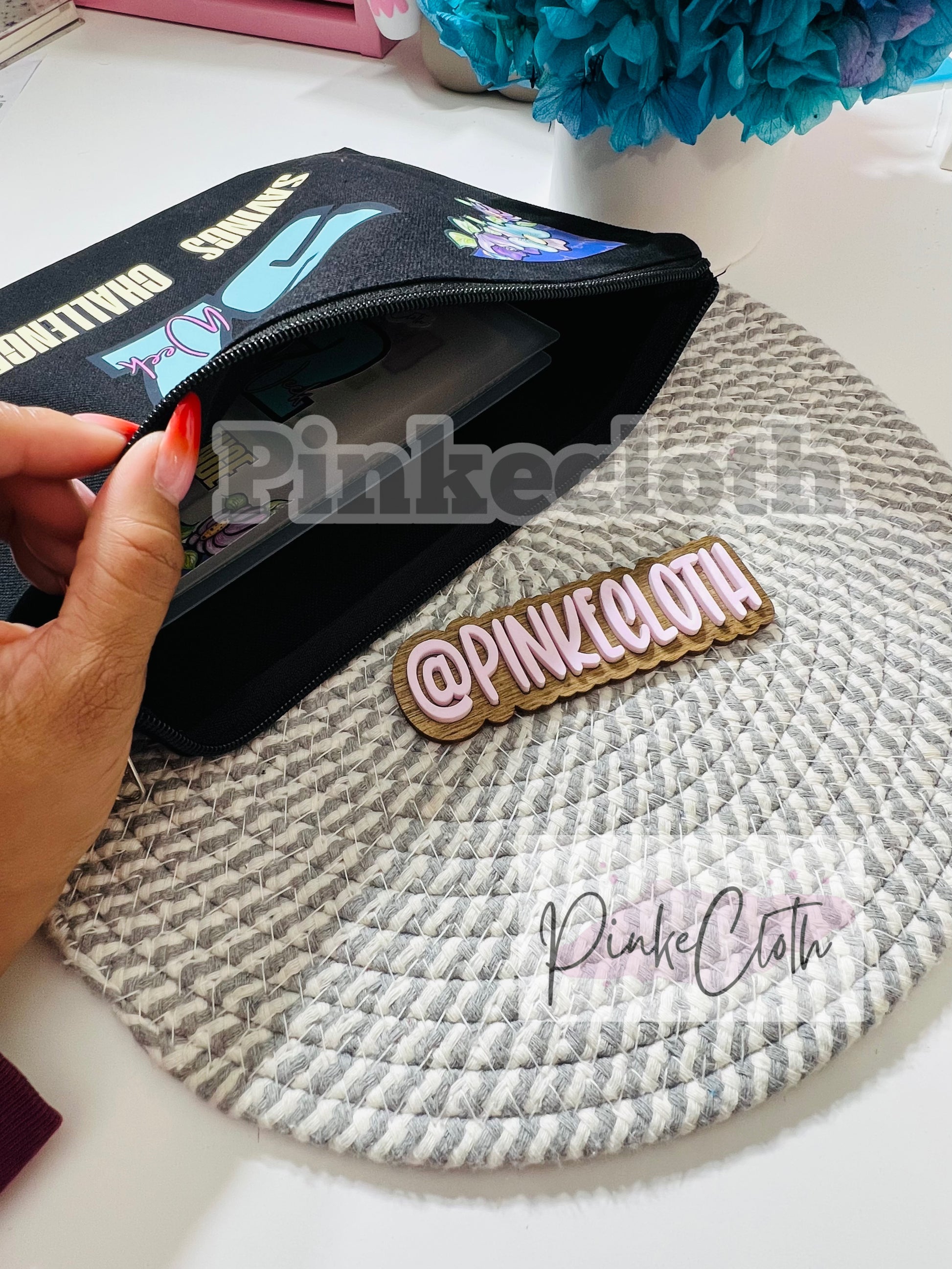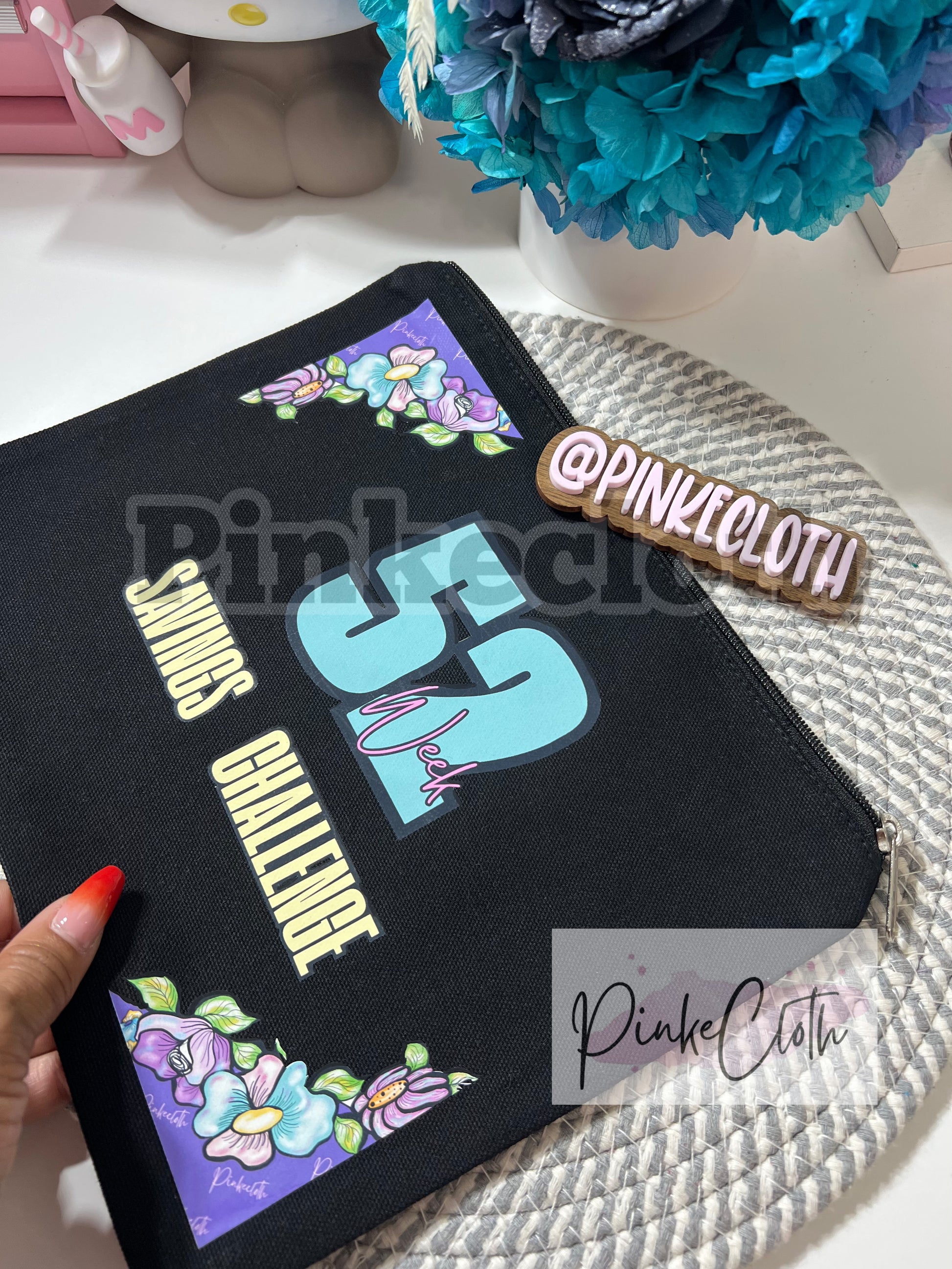This pouch is spot clean and can fit all of your favorite pens, pencils, markers. It can also be used as a makeup pouch also if needed. I like to use this to hold my budget cash envelope notebooks, calculator, and stickers