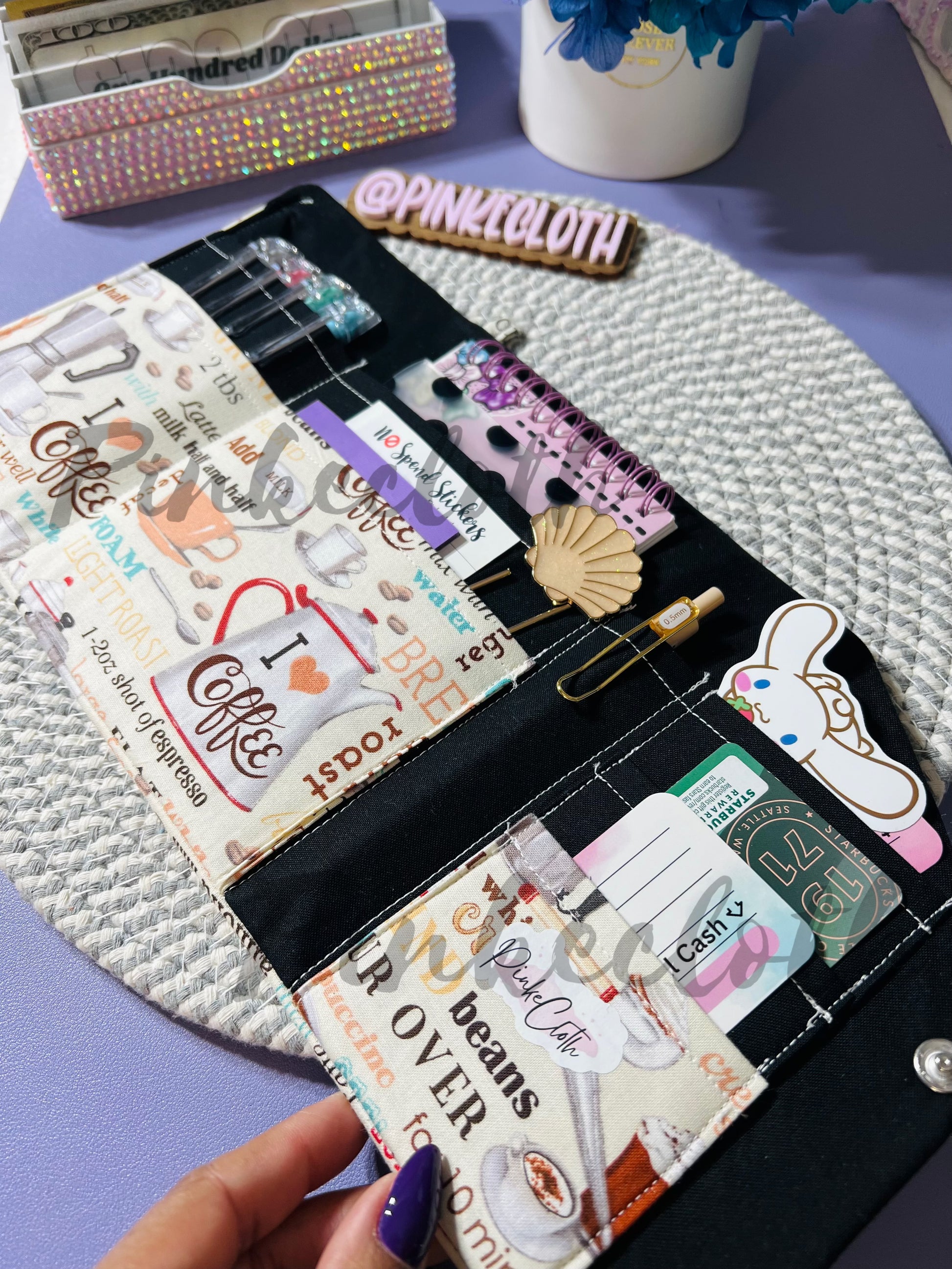 This cute handmade planner wallet is cute to carry a of your special accessories like pens, markers., sticky notes, business cards and more